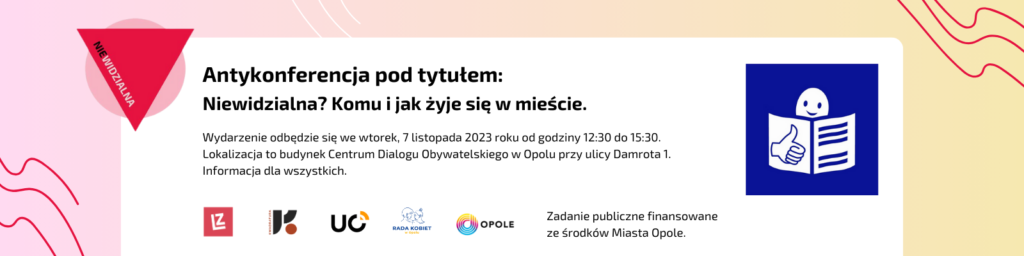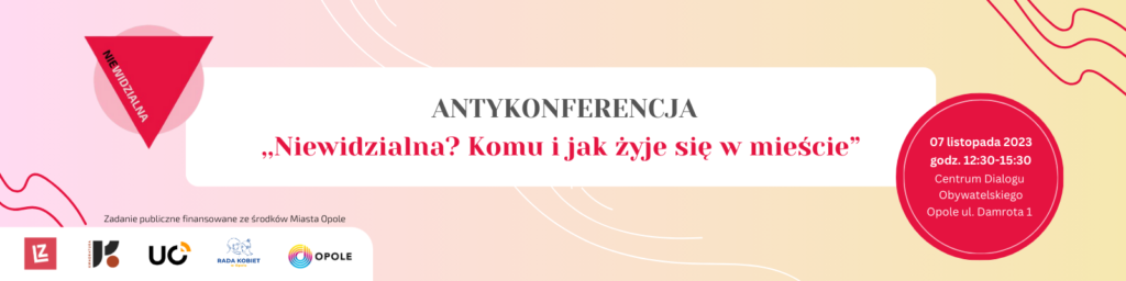 - Antykonferencja pod tytułem: „Niewidzialna? Komu i jak żyje się w mieście” realizowana w partnerstwie z Katedrą Nauk Socjologicznych Uniwersytetu Opolskiego, Kołem Naukowym Kwadratura i Radą Kobiet w Opolu.