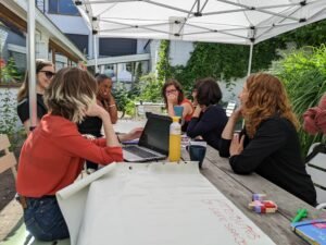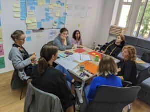 W ramach projektu pracowałyśmy w międzynarodowym zespole. Poznawałyśmy perspektywę Polski, Hiszpanii, Chorwacji i Belgii. Wspólnie opracowałyśmy bazę pracy z grupami – przepis na bezpieczną przestrzeń. To lista rzeczy, o których warto pamiętać współtworząc przestrzeń do pracy – zarówno fizyczną jak i psychiczną. Od tego, czy można swobodnie napić się wody po możliwość wypowiedzenia się i wzajemny szacunek. Lista do znalezienia w materiale „Podstawowa wersja gry” i jako osobny plik „safe space checklist”.